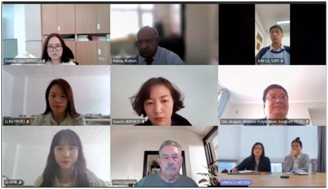 为进一步推进我校联合国教科文组织职教联系中心工作,4月11日,国际教育学院与联合国教科文组织驻华代表处(UNESCO Beijing)、教科文组织亚太经合组织(UNESCO APCEIU)、韩国职业教育与培训研究所(KRIVET)举行线上工作会议。联合国教科文组织驻华代表处教育项目专家Robert Parua、项目助理Zhao Tianzhou,教科文组织亚太经合组织成员,韩国职业教育与培训研究所专家Jeeoh Lee、Dahee Choi、Soorin,新西兰职教专家John Clayton,我校国际教育学院院长秦景俊及部门成员参加了本次会议。