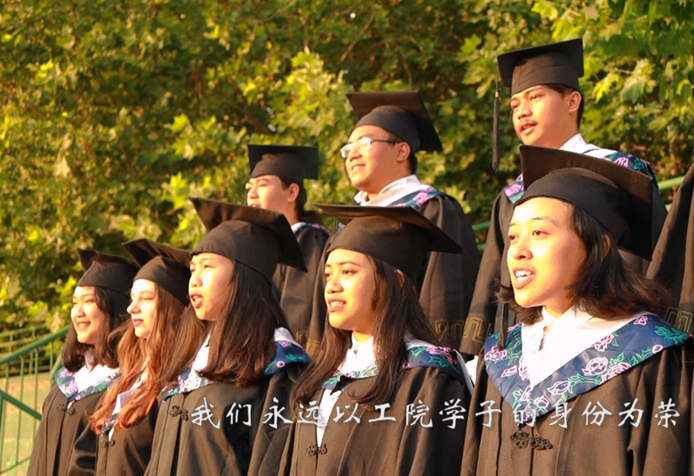 毕业典礼以留学生精心制作的微视频《远航•追梦》拉开序幕。视频中,同学们以在工院菁菁校园为背景而填词的《起风了》的温情歌声和《不说再见》的深情吟唱中,向学校领导和老师们展示了在校三年学习生活的珍贵画面,表达了扬帆远航、逐梦青春、不忘母校的深情。