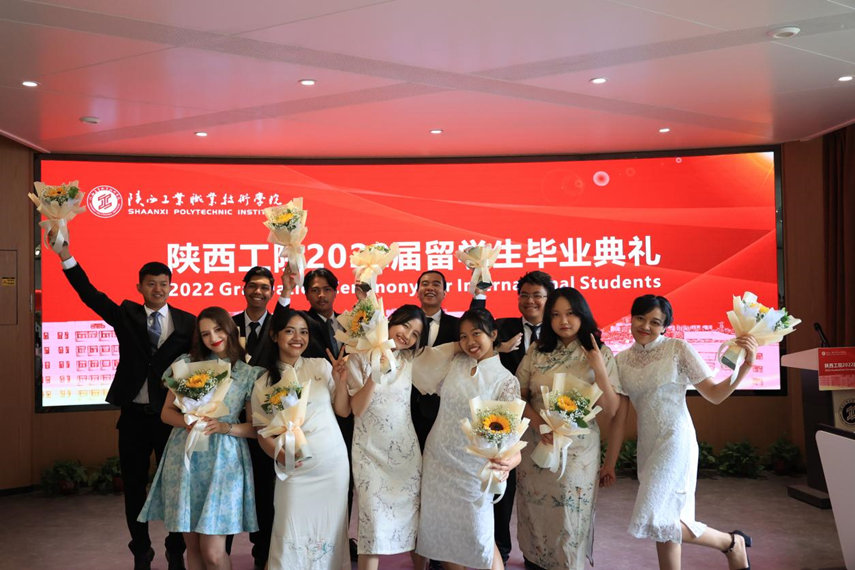 典礼上,校长刘永亮为留学生逐一颁发了毕业证书、纪念品并合影留念。副校长梅创社为优秀毕业生颁发了荣誉证书,为校友联络员颁发了聘书。党委副书记田昊代表学校祝贺各位留学生顺利完成学业,祝福他们梦圆当下、前程锦绣、长乐未央。希望他们在新的征程上,不负过往、不畏将来;接纳变化,迎接挑战;心向卓越,追逐梦想;交流互鉴,乘风破浪。他殷切祈盼同学们承载母校的荣光、铭记师长的嘱托,用青春续写“陕工品牌”的华美篇章。