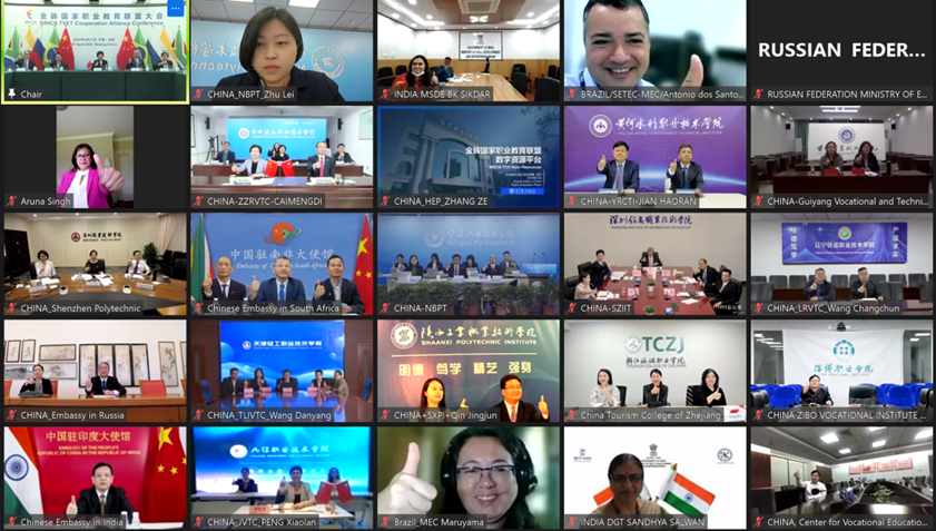 为落实习近平主席在金砖国家领导人第十三次会晤上提出的建立金砖国家职业教育联盟的倡议,4月27日,由中国教育部主办的金砖国家职业教育联盟大会在北京以线上线下相结合形式召开。金砖五国职业教育主管部门、驻华使节、行业组织、职业院校和企业代表共百余人出席会议,共同见证金砖国家职业教育联盟正式成立。我校作为五国68家发起成员单位之一,派出代表以视频会议的形式参会。
