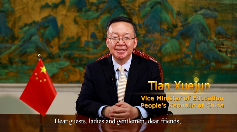 中国教育部副部长田学军发表视频致辞。田学军指出,在五国的共同努力下,金砖国家职业教育联盟正式成立,这对于促进五国职业教育改革发展、打造对话和信息平台、推动职业教育合作走深走实具有重要意义,将为共同应对教育领域挑战、助推各国经济转型和产业升级、共创全球发展新时代作出积极贡献。田学军对联盟未来发展提出三点建议:一是五国共同参与,确保取得实效,联盟建设应秉持开放合作理念,充分发挥每个国家、每个成员的积极性。二是深化产教融合,不断增强职业教育适应性,培养更多适应经济社会发展需求的高素质人才。三是创新发展途径,利用现代技术加快技能人才培养模式改革,加大绿色技术和数字化赋能推广力度。