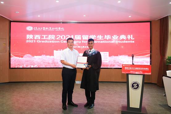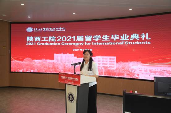 党委副书记田昊代表学校祝贺各位留学生顺利完成学业,赞扬作为陕西工院的首届留学生,各位同学为所有留学生树立了良好典范。他期待各位留学生在新的征程上,接纳变化、迎接挑战,勤勉上进、追逐梦想,交流互鉴、赢得未来;并期盼同学们承载母校荣光,铭记师长嘱托,绽放出属于自己的流光溢彩,用青春续写“陕工品牌”的华美篇章!