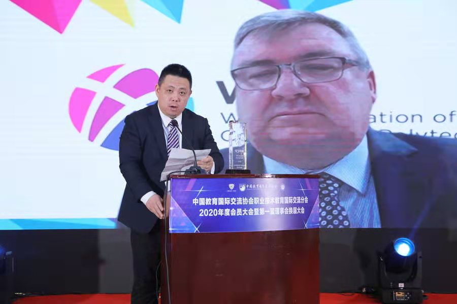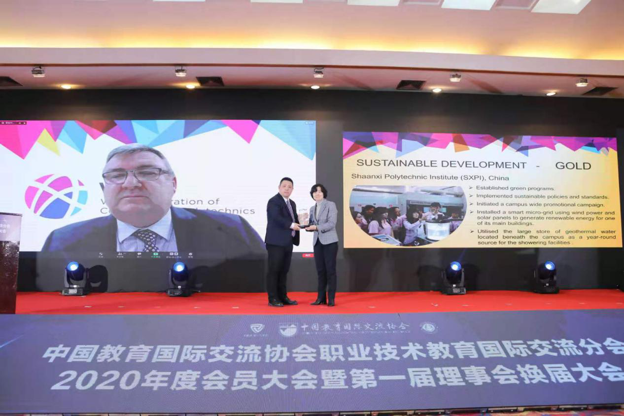 11月27日,世界职业院校与技术大学联盟(WFCP)2020年度卓越奖全球颁奖典礼以视频会议的形式举行。我院从国际上众多院校中脱颖而出,获得卓越奖“教育可持续发展”金奖。在南京分会场,世界职教院校联盟副主席、中国教育国际交流协会副秘书长沈雪松向我院颁奖,副院长段峻代表学院上台领奖并致答谢词。