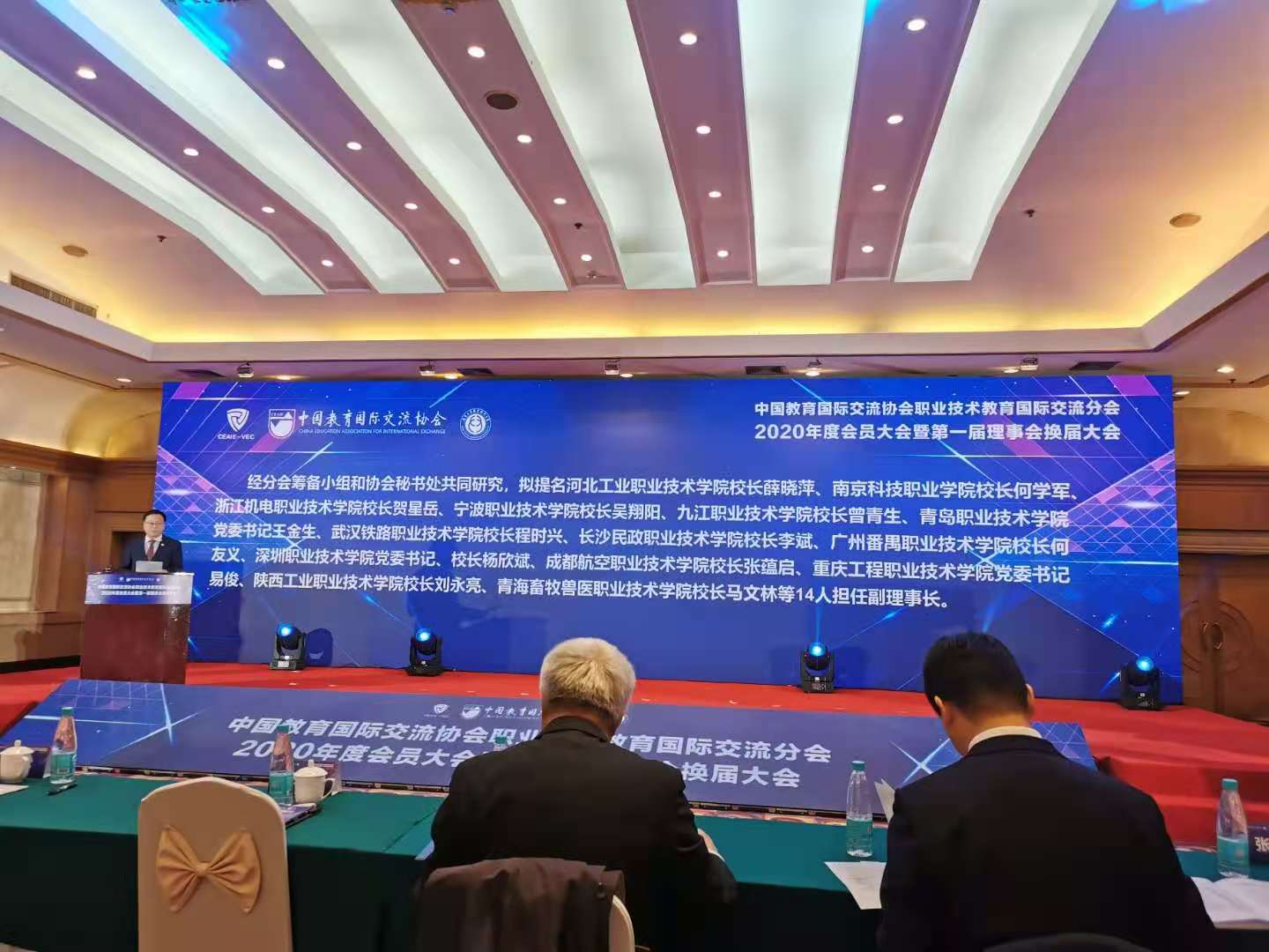11月27日,中国教育国际交流协会职业技术教育国际交流分会2020年度会员大会暨第一届理事会换届大会在南京召开,会议选举产生了职教分会第二届理事会,我校当选副理事长单位,校长刘永亮当选为副理事长,国际教育学院院长秦景俊当选为副秘书长。