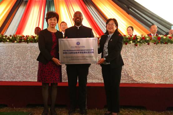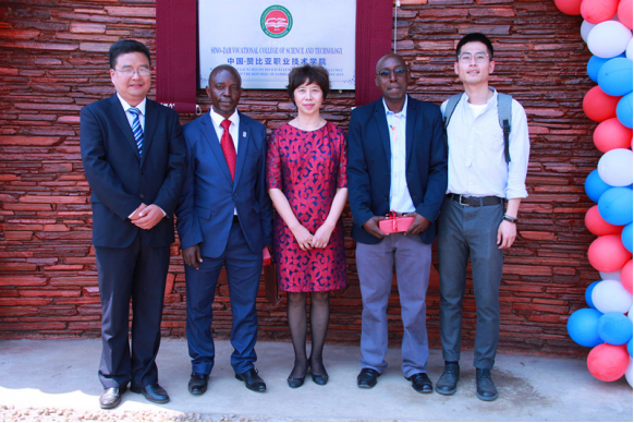 赞比亚高教部部长Brian Mushimba、中国教育部职成司巡视员郁洁共同向我院授牌