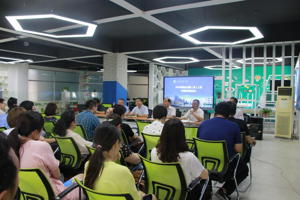 7月5日,我院在图书馆举办2019年因公出国(境)人员行前培训会。副院长梅创社出席会议并讲话,人事处、教务处、国际合作与交流中心负责人及各出国(境)项目的教职工近70人参加了会议。