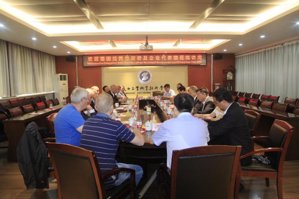 惠朝阳书记对拉腾市代表团来访表示热烈欢迎。在介绍了我院近年来的发展概况和与德国的教育交流合作情况后,他表示,在《国家职业教育改革实施方案》中,明确提出了要借鉴德国“双元制”职业教育模式,促进产教融合校企“双元”育人。建设国际一流高职院校,与国际一流企业对接是实现学院可持续发展的方向,服务地方国际一流企业是我院今后的合作重点。拉腾市与陕西交往源远流长,合作基础良好,希望能与拉腾市建立合作项目。就今后的合作方向,他提出了两点希望:一是我院重视与德国开展师生交流等教育交流合作,希望代表团能为我院与德国院校开展教育交流合作牵线搭桥,促成更多的合作项目。二是希望发挥我院优势,服务德国在华,特别是在陕企业,校企合作制定国际课程标准,开展订单式人才培养,争取打造校企人才培养基地。