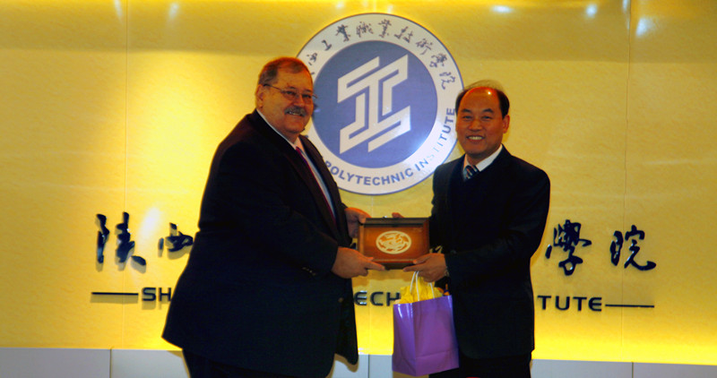 在观看了我院的专题片后,梅创社副院长从校企合作、学生就业、国际合作、技能大赛、社会服务及下一步努力方向等方面向雷·迪茨博士介绍了我院的基本情况。他表示,美国的职业教育和高等教育发达,是中国的学习榜样,希望通过雷·迪茨博士本次访问交流,建立起两校的合作项目,达成合作成果。通过学习西伊利诺伊大学的先进经验,提高我院的办学水平。