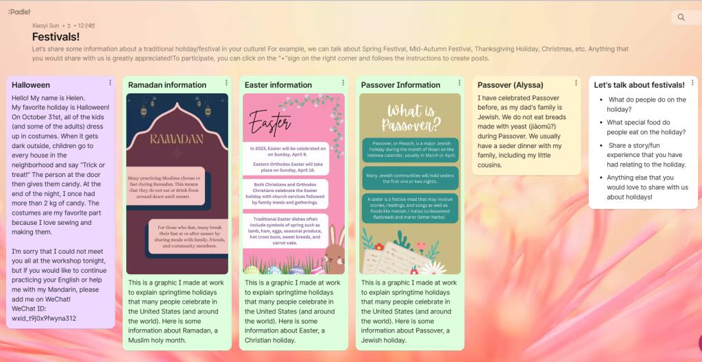 美国学生在Padlet上关于节日主题的分享