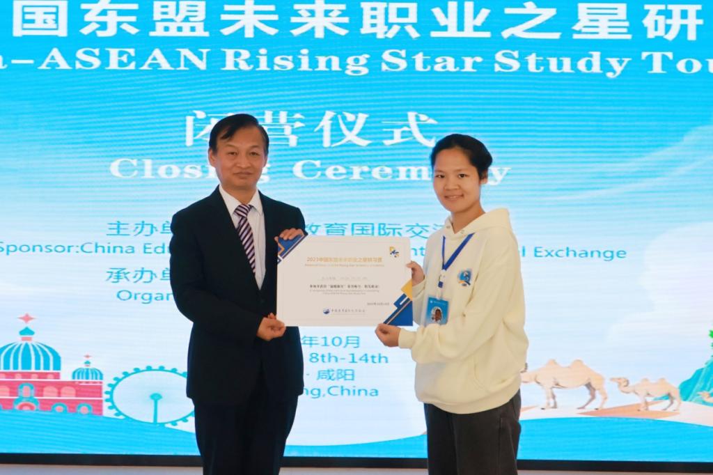 10月14日,2023中国东盟未来职业之星研习营在我校经开校区图文信息中心落下帷幕。学校党委副书记贺天柱出席闭营仪式。仪式由国际教育学院院长秦景俊主持。